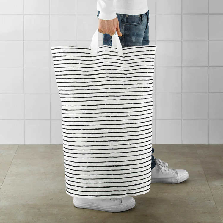 سبد لباس ایکیا IKEA-KLUNKA مناسب نگهداری لباس ها است. این سبد به راحتی جمع میشود. پس در مواقعی که نیازی به آن ندارید میتوانید تا کنید و داخل کمد قرار دهید. این سبد حداکثر گنجایشی برابر با 60 لیتر دارد. که معادل است با 7 کیلوگرم لباس. این سبد از پارچه پلی استر ساخته شده که بسیار بادوام و مناسب محیط های مرطوب است.